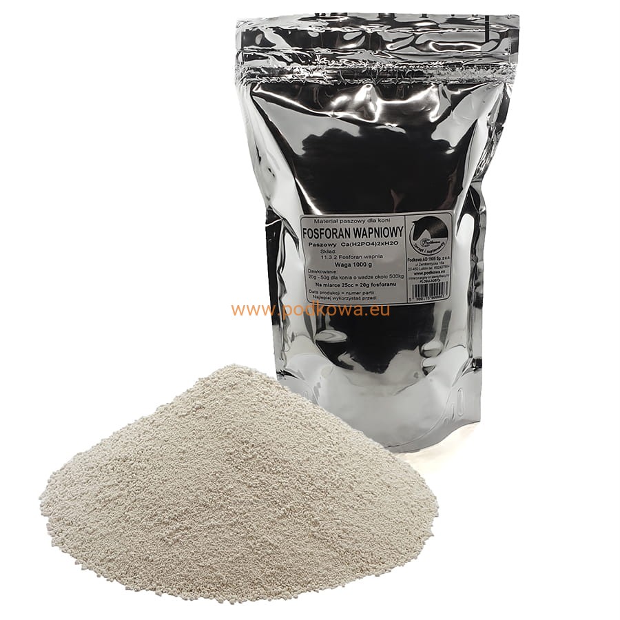 Fosforan jednowapniowy — Ca(H2PO4)2xH2O — zawartość fosforu 23%, zawartość wapnia 15% dobrze zbilansowane proporcje, pH 4. Przydatny gdy mamy potrzebę jednoczesnej suplementacji fosforem i wapniem. Zalecamy podawanie przy karmieniu wysłodkami z buraków cukrowych. Dawka dzienna od 20 do 50g dziennie dla konia o wadze około 500kg. W uzasadnionych przypadkach więcej po decyzji lekarza weterynarza.