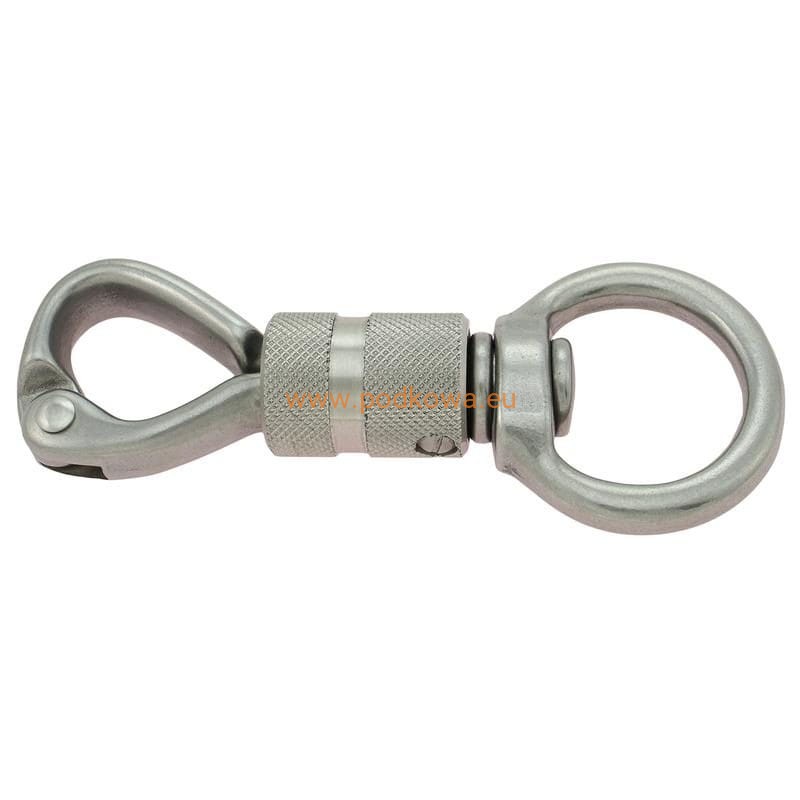 Produkt wyposażony jest w karabińczyk bezpieczny zakręcany lub spustowy w przypadku liny cienkiej.