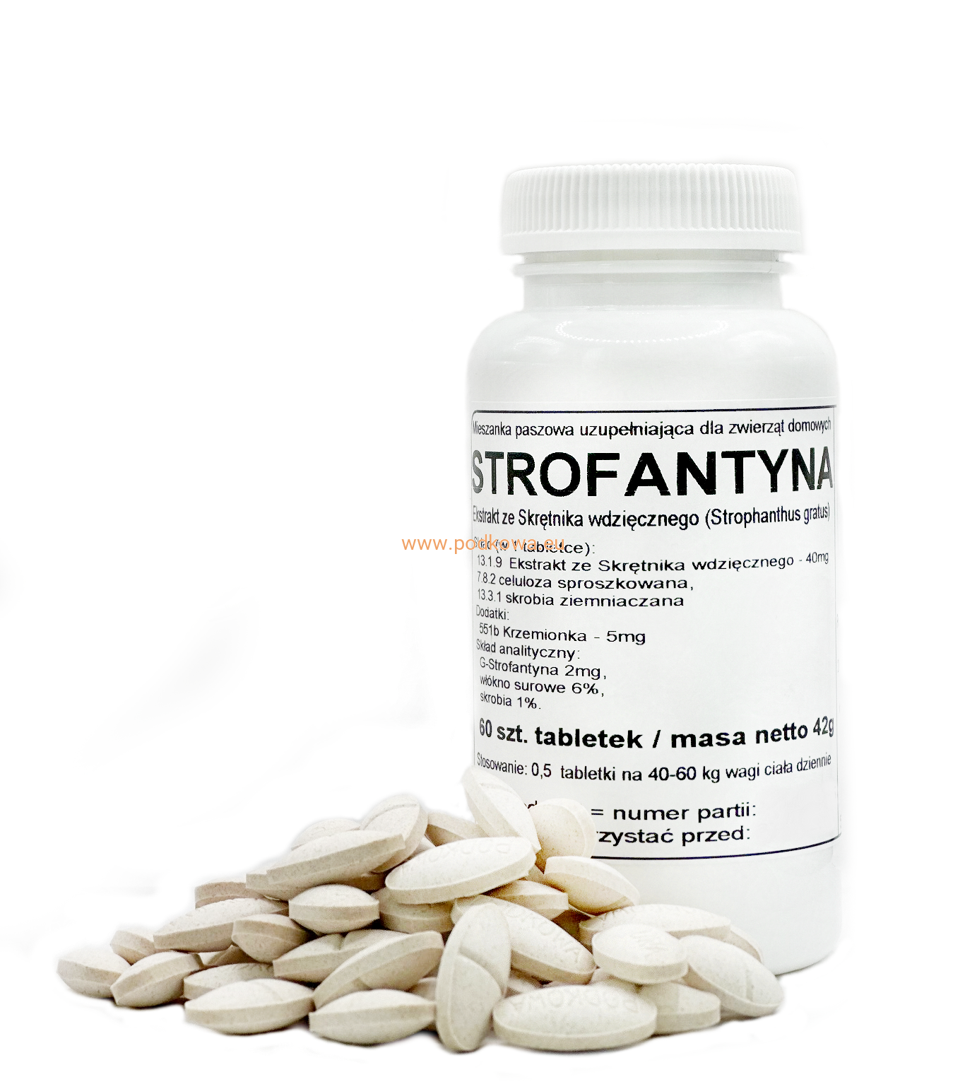 Skład analityczny: G-Strofantyna 2mg, włókno surowe 6%, skrobia 1%.